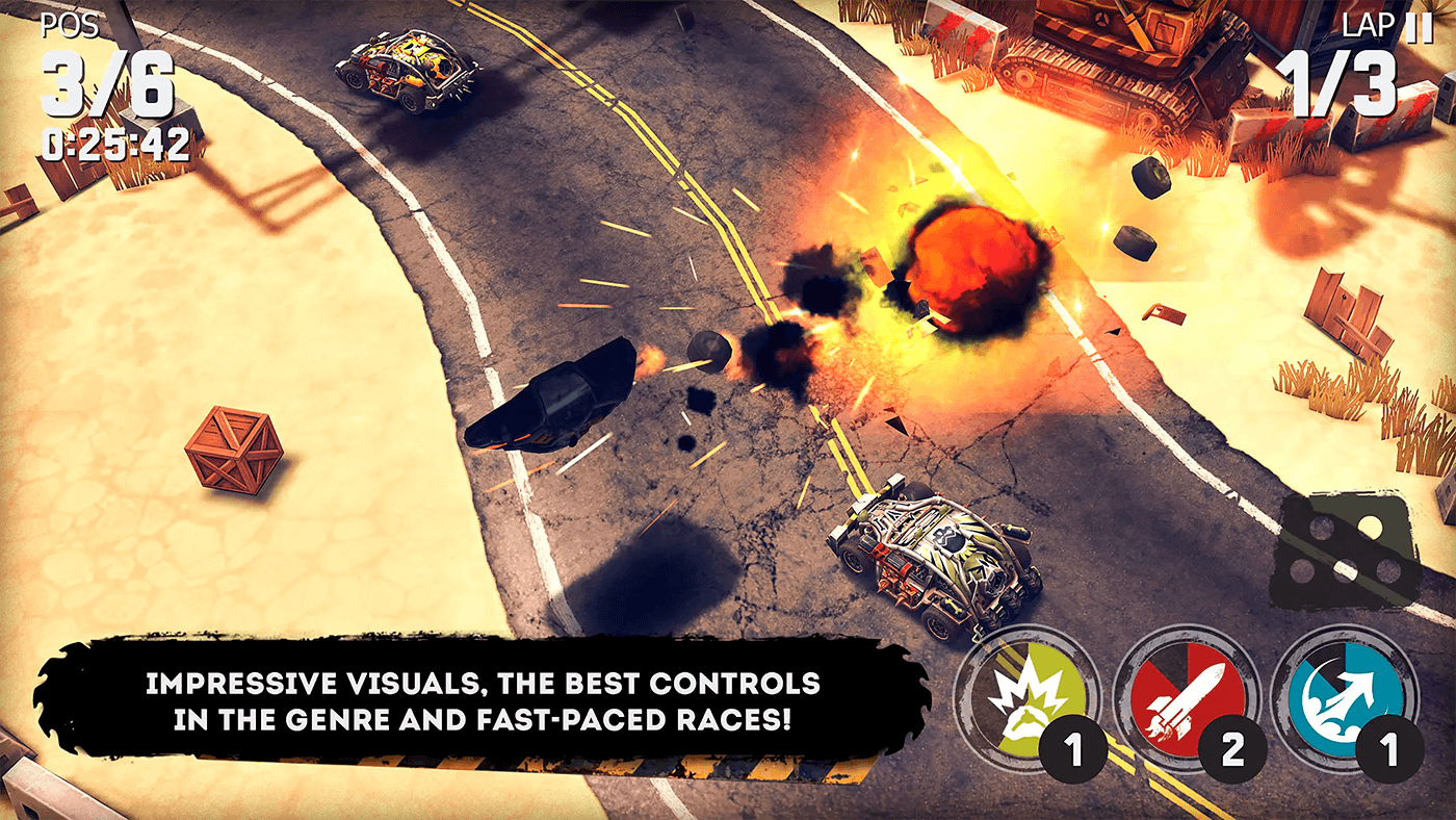 caRRage is an addictive arcade racing game, that reveals a post-apocalyptic universe, ruled by mad and desperate drivers. Experience mind blowing races on a number of tough-looking vehicles: starting with a dusty rust-bucket ending with a van armed with a circular saw!