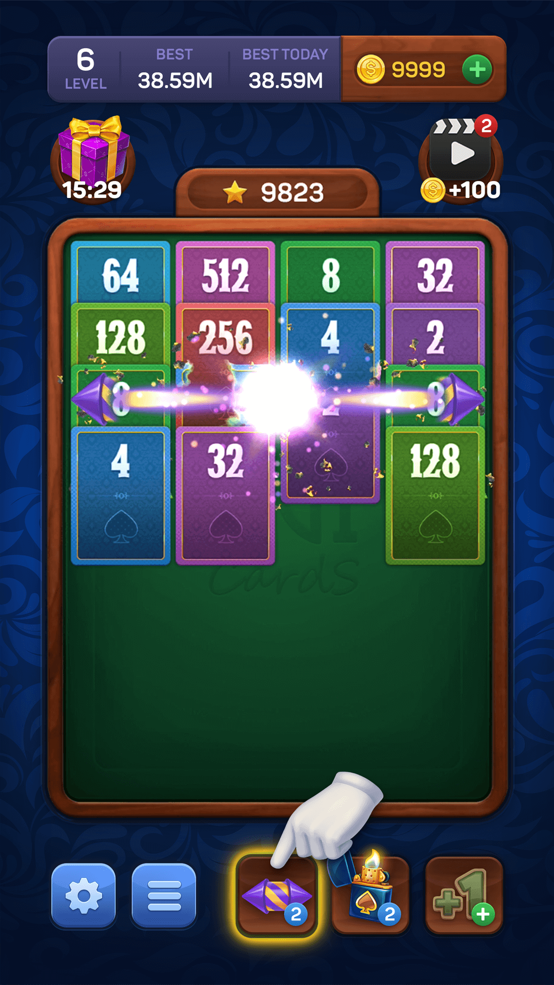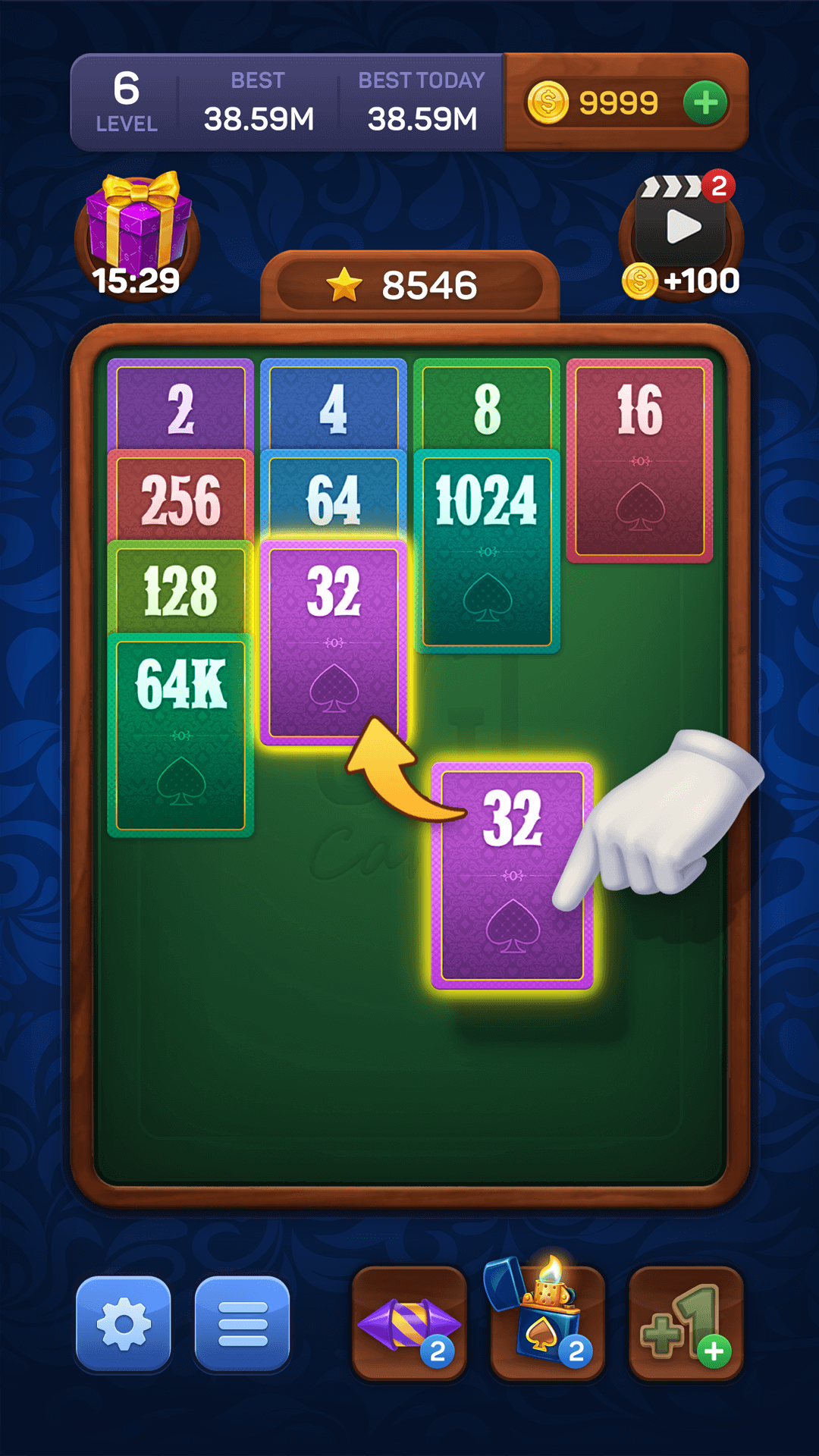 The game is incredibly simple to use: players must move cards by dragging or tapping them to merge cards with the same number. Merged cards create new cards with higher numbers. The game has no time limits, allowing players to enjoy the game at their own pace.